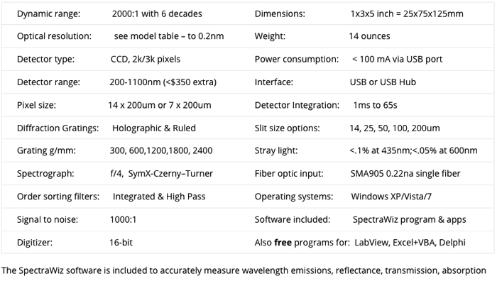 Portable spectrometers include a USB-2 interface cable and interface to any 32-bit pc for a portable or tabletop measurement system.